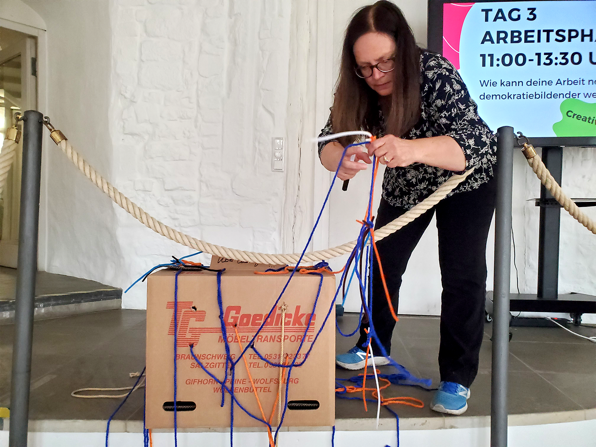 Dazu hat die Bundesakademie im Jahr 2024 zu vier Laboren eingeladen, um gemeinsam mit den Expert:innen zu reflektieren, was ihre jeweilige künstlerische, vermittelnde oder wissenschaftliche Arbeit politisch macht. Anhand von Kurzvorträgen, Interviews und der künstlerischen Kreation von Objekten und Performances entstand eine immer dichter werdende Beschreibung ihrer künstlerischen, kulturellen oder bildnerischen Praxis. Dahinter stand ein methodisches Verfahren, welches die Ebenen der diskursiven Beschreibung, der narrativen Erzählung und der kreativen Gestaltung unterschied und in sich wiederholenden Schleifen abwechselte.
